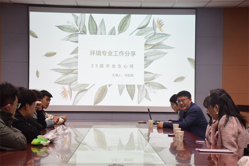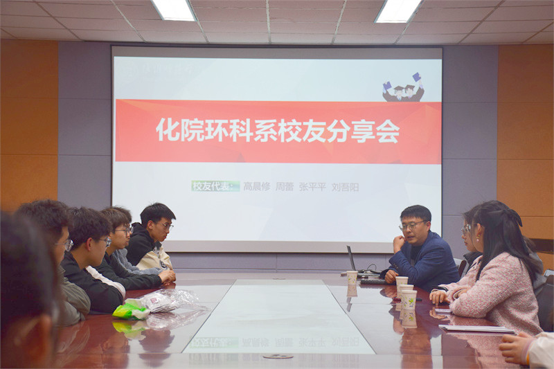 首先支部书记郝子甲老师分别介绍了四位学姐的现况:高晨修学姐硕士研究生毕业后,任职于淮安市清江浦区应急管理局;周蕾学姐正在申请攻读博士学位;张平平学姐硕士研究生在读;刘吾阳学姐在交大环境保护研究院(江苏)分公司从事环评专业对口工作。