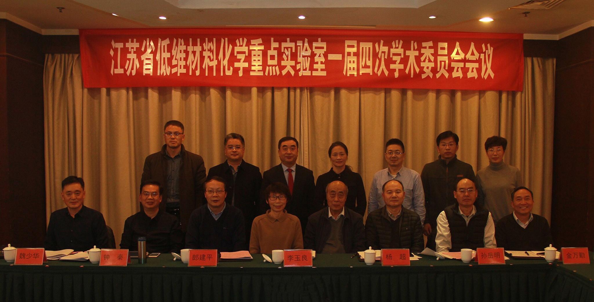 12月11日,江苏省低维材料化学重点实验室学术委员会一届四次会议在南京召开。实验室学术委员会主任郎建平教授,副主任李玉良院士,委员杨超研究员、孙岳明教授、钟秦教授、金万勤教授、魏少华教授,省教育厅科学技术与产业处丁同玉副处长,学校党委副书记金叶玲教授、科研部、77779193永利官网及重点实验相关领导及研究人员出席了本次会议。校党委副书记金叶玲教授致欢迎词,丁同玉副处长做重要讲话。会议开幕式由科研部部长张宇教授主持。