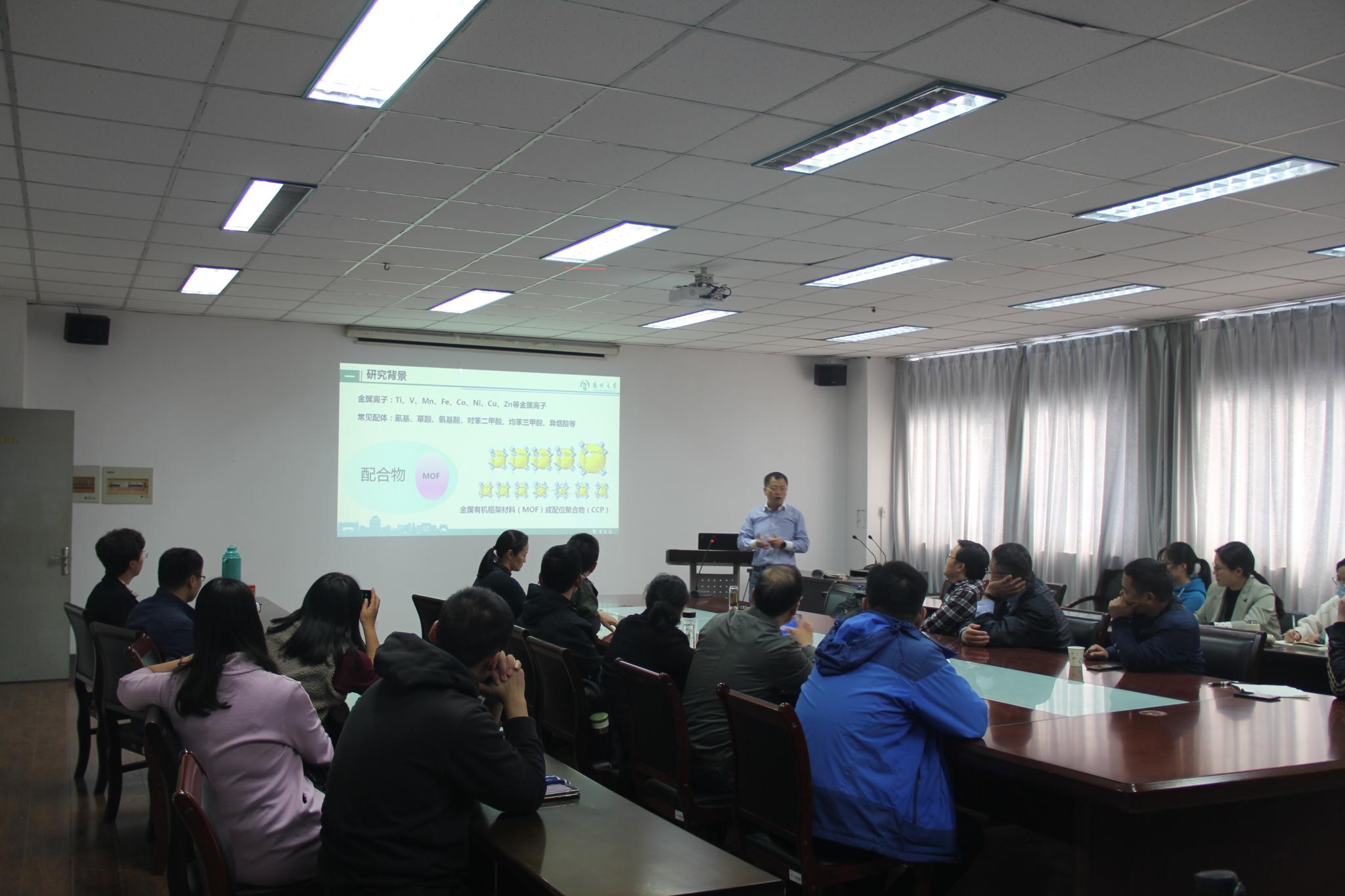 10月22日下午,扬州大学77779193永利官网博士生导师庞欢教授,应邀在77779193永利官网219会议室做题为《基于配合物框架材料的能源化学研究》学术报告。报告会由化院副院长张莉莉教授主持,化院部分老师和研究生参加了本次学术交流。