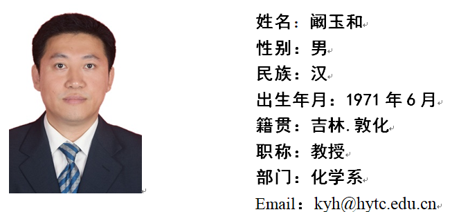 1994年7月毕业于延边大学化学系,获学士学位并留校工作;2005年7月毕业于东北师范大学功能材料化学研究所,获博士学位。2010年4月至2010年9月在香港大学化学系访问研究;2002年9月到淮阴师范学院工作。目前已在J Am Chem Soc、Angew Chem Int Ed、Chem Comm、J Phys Chem Lett、ChemSusChem、J Mater Chem C、 J Chem Phys和化学学报等国内外SCI源期刊发表论文150余篇,论文被引用3000余次。指导本科生完成江苏省大学生创新实践训练计划重点项目4项,获江苏省本科优秀毕业论文二等奖1项,江苏省首届大学生科技创新论文大赛一等奖和三等奖各1项,“挑战杯”全国大学生课外学术科技作品竞赛江苏省决赛二等奖、三等奖各1项。412实验室有50余名同学以优异成绩被中科院福建物质结构研究所、上海交通大学、东南大学、中南大学、苏州大学、东北师范大学、上海科技大学和瑞典乌普萨拉大学等国内外重点大学及科研院所录取为硕士、博士研究生。