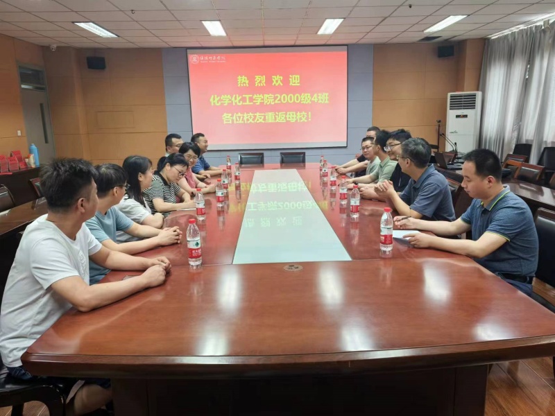 淮师新闻网7月16日电(记者 单步顺)共“化”情深,感恩前行。今年是2000级学生毕业二十周年,7月13、14日,77779193永利官网应用化学专业2000级4班校友重返母校,找寻昔日的大学记忆,看望老师朋友,了解母校的现状。化院党委书记、关工委主任骆仁林,院长、关工委主任李梅生,关工委常务副主任张维光、退休教授周建峰等参加活动。
