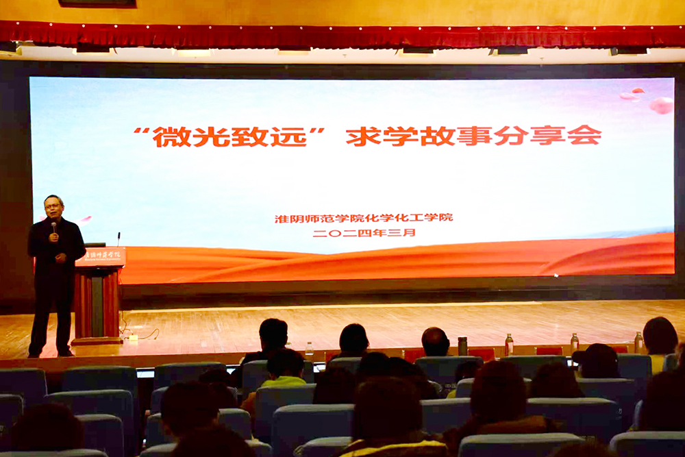 淮师新闻网3月29日电(记者 于菁)为进一步加强77779193永利官网学风建设,激发学生考研热情,3月27日下午,化院在图书馆报告厅开展“微光致远”求学故事分享会。学院党委书记、关工委主任骆仁林,党委副书记、关工委副主任万茹和全体辅导员出席分享会。活动特邀退休教师李荣清、教务处处长周守勇、化院教师王晓宇、辅导员郝子甲作求学故事分享。