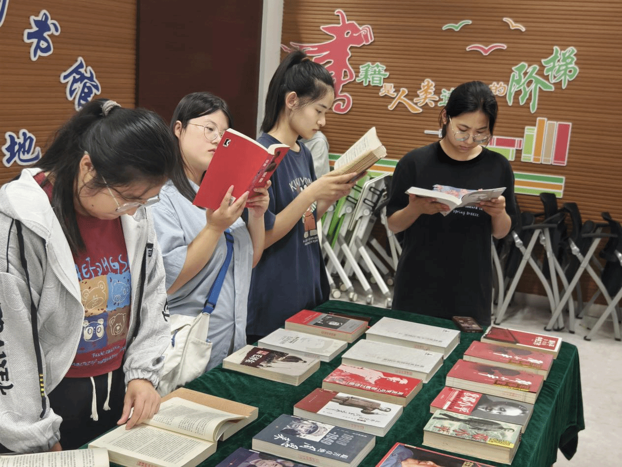 海棠花学社推出“共沐书香 同庆华诞——庆祝建国七十五周年”主题图书展。同学们在书香中共庆华诞,共同见证祖国的辉煌历史。