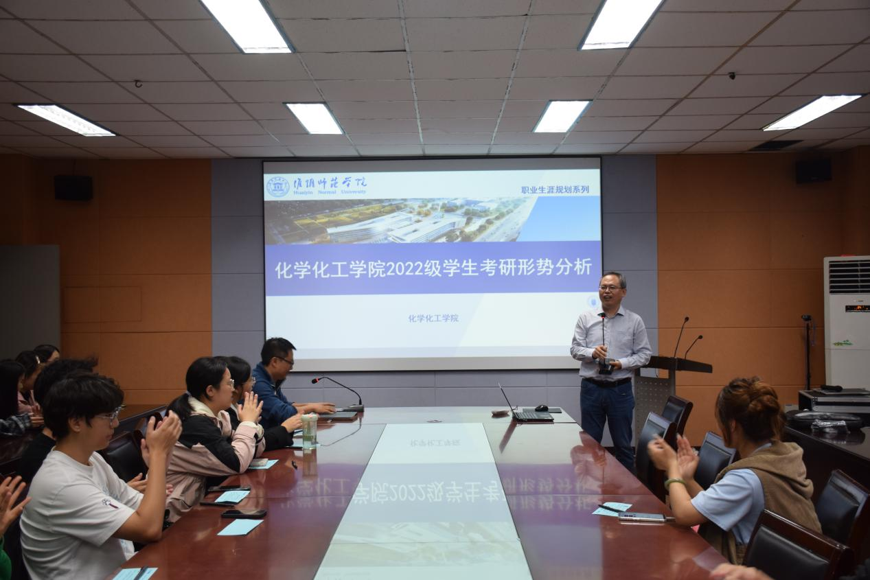 学院党委书记骆仁林对化院历年考研概况进行介绍。化院作为“考研先进单位”,考研录取率一直遥遥领先,往年甚至一度接近50%。这一卓越成绩的背后,凝聚着学院领导的重视,更有全体教师的无私奉献与精心指导,以及学子们对学业与科研的执着追求。