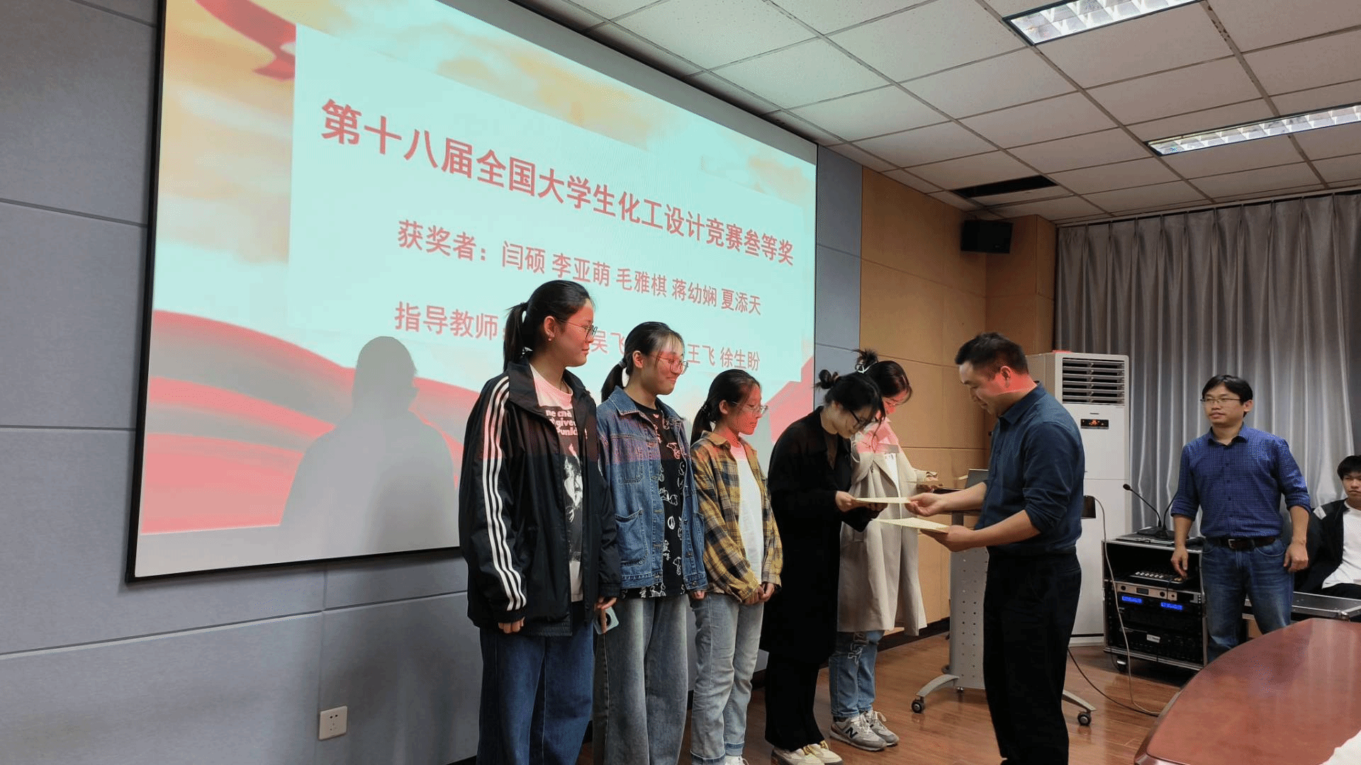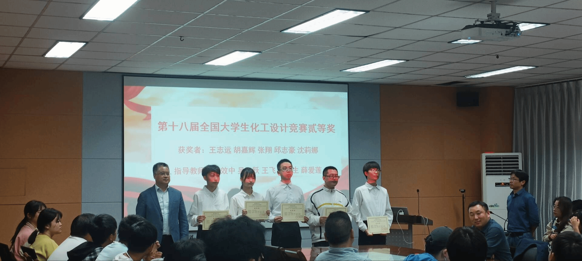 “天正设计杯”第十八届全国大学生化工设计竞赛刚刚落下帷幕,化学化工学院取得了优异的成绩。在此次见面会上,学院领导为获奖团队进行了颁奖仪式,周处长为新生们介绍了化工设计竞赛,指出该竞赛是化工系学生成长的必经之路。同时,周处长鼓励同学们积极向学长学姐们学习,刻苦用功,勤奋努力。