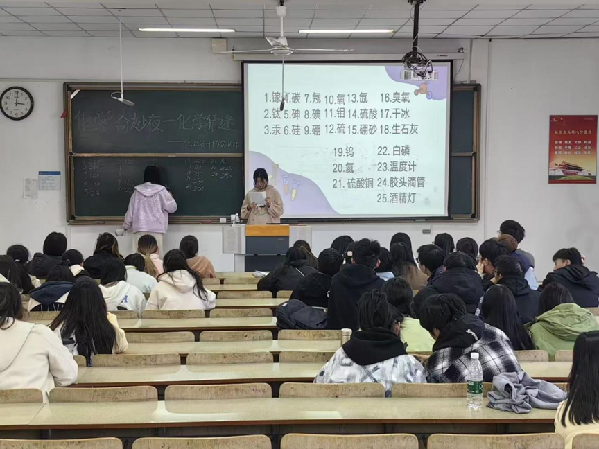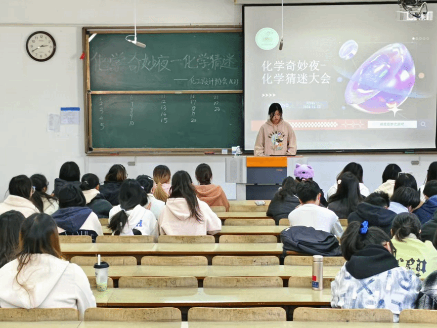 为丰富校园文化生活,营造积极向上的学习氛围,11月23日下午2点,化工设计协会在崇文阶204教室成功举办了一场主题为“化学奇妙夜——化学猜谜大赛”的活动。本次活动采用寓教于乐的方式,培养学生对化学知识的浓厚兴趣。