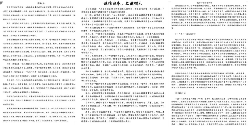 【图为2101班刘敏诚信征文作品】 【图为2305班蒋梦瑶诚信征文作品】 【图为2206班张轲诚信征文作品】