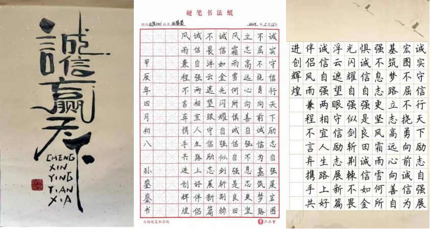 【图为2305班马思汗诚信书法作品】 【图为2201班孙鋆鋆诚信书法作品】 【图为2206班封骁诚信书法作品】