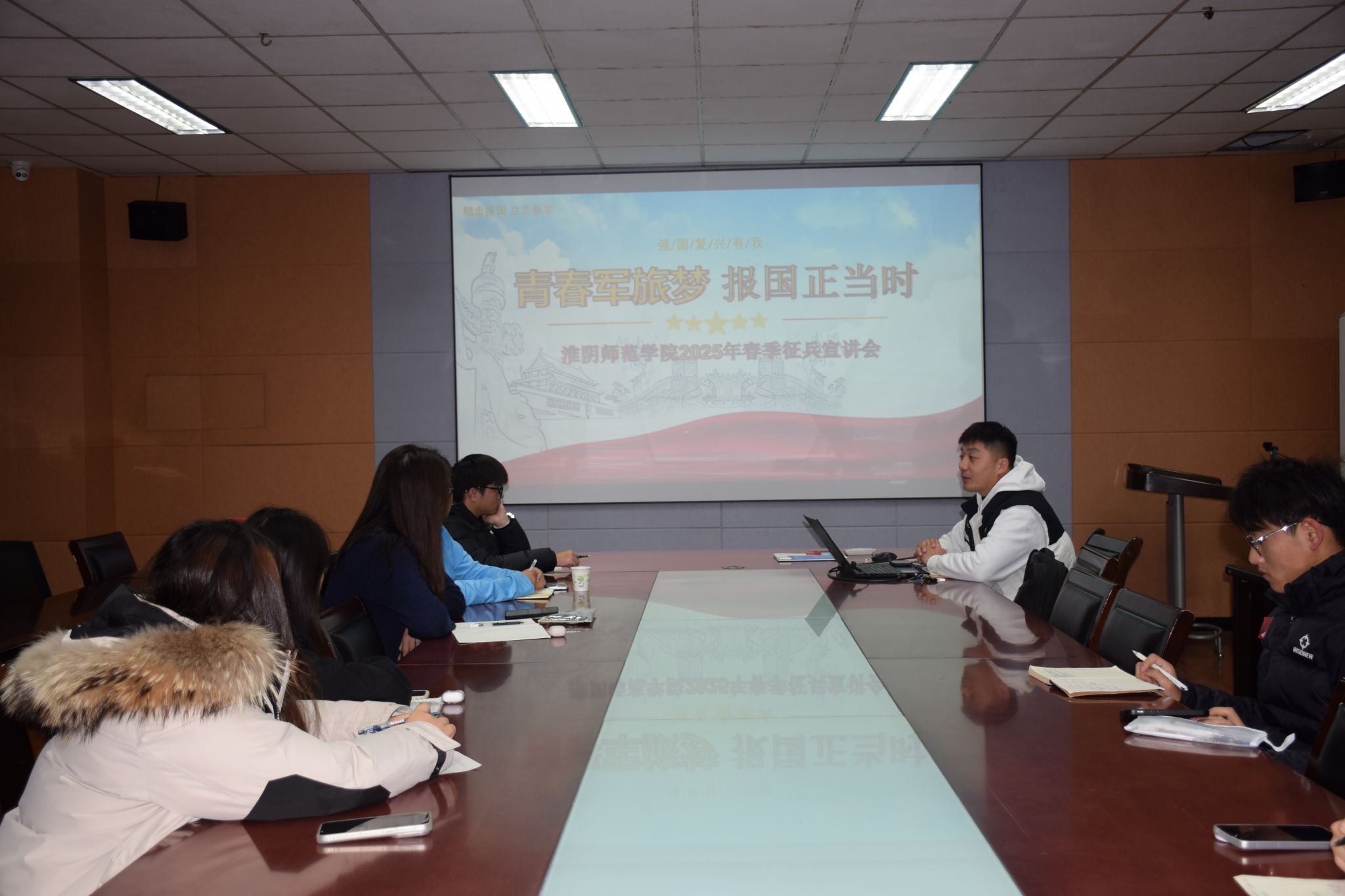 为充分调动学生报名应征入伍的积极性,强化学生服兵役的责任感和参军保卫祖国的意识,12月11日晚,化院在化学楼219会议室召开2025年春季征兵工作动员会。辅导员李伟主持动员会,化院各班级负责征兵工作的学生干部参加动员大会。