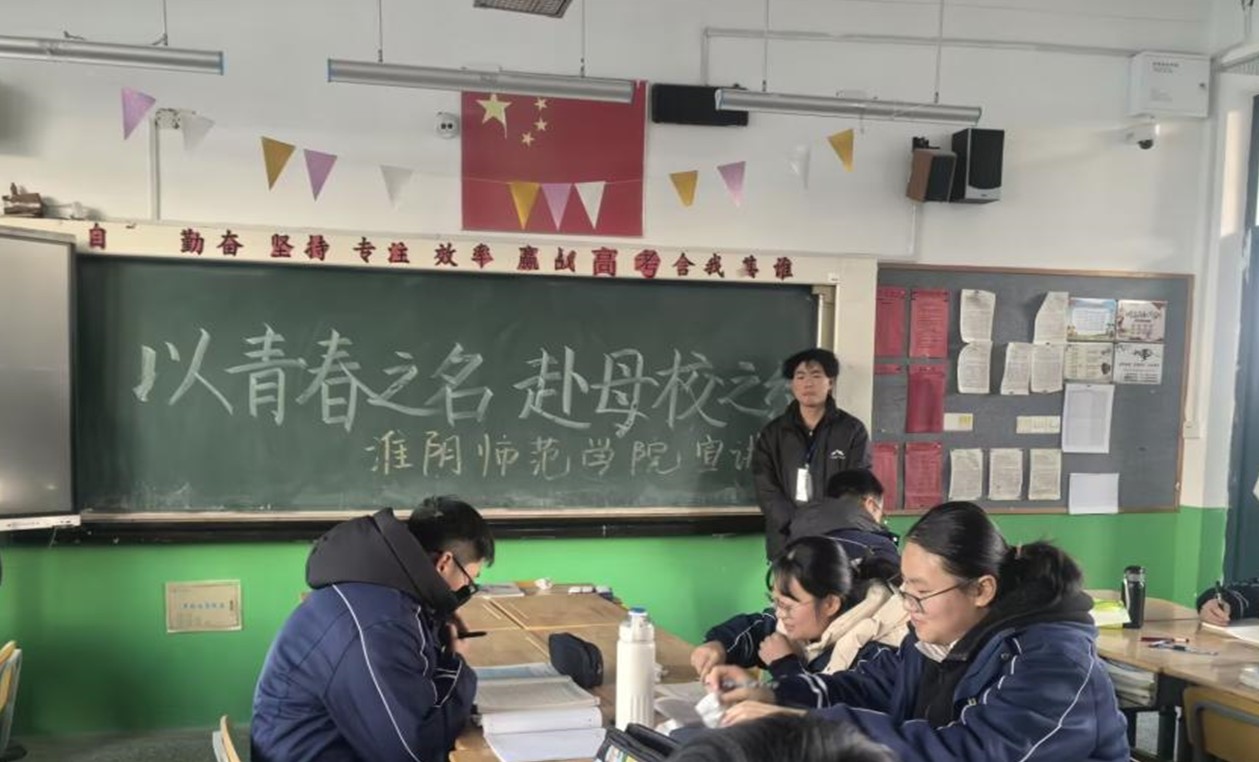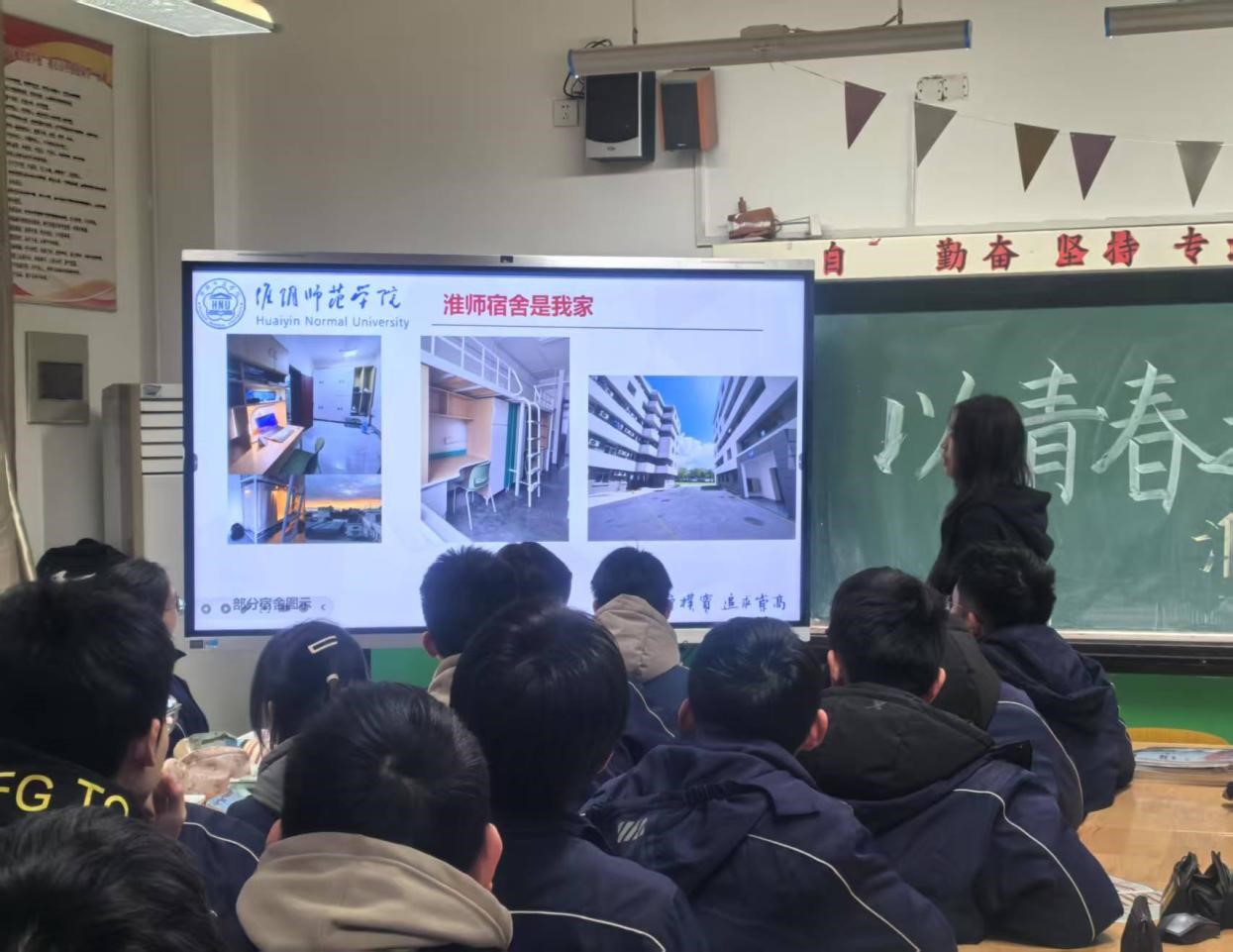 化院2408班温馨同学与汪涵、陈辛蕊、孙正洋三位同学组建了宣传小组,代表淮阴师范学院来到了高中母校南京宇通实验学校。