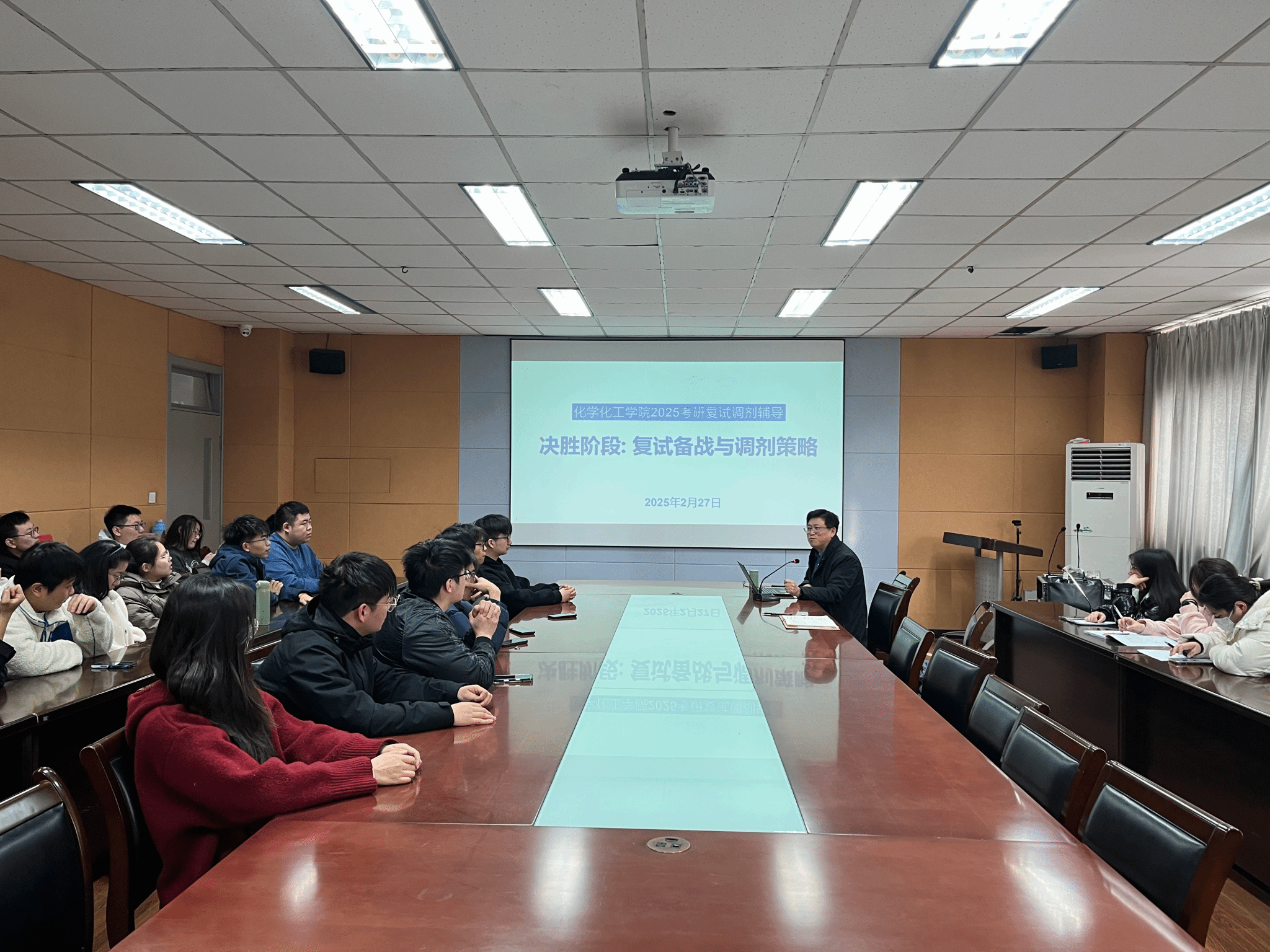 随着考研分数和考研国家线的公布,针对考研复试同学需求,2月27日下午,77779193永利官网于化学楼219会议室召开考研复试与调剂的专题指导讲座。本次讲座特邀阚玉和老师,就复试备考技巧、调剂政策解读以及面试策略等议题进行了深入的阐释,吸引了学院内六十余名考研学子参与。