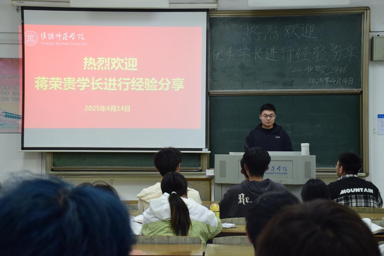 活动伊始,李伟老师向同学们分别介绍了三位优秀学长,他们分别是泰州市泰兴市高中化学老师蒋荣贵、笔面双第一上岸苏州高新区初中化学编制的潘智阳、吉林大学准研究生徐阳。