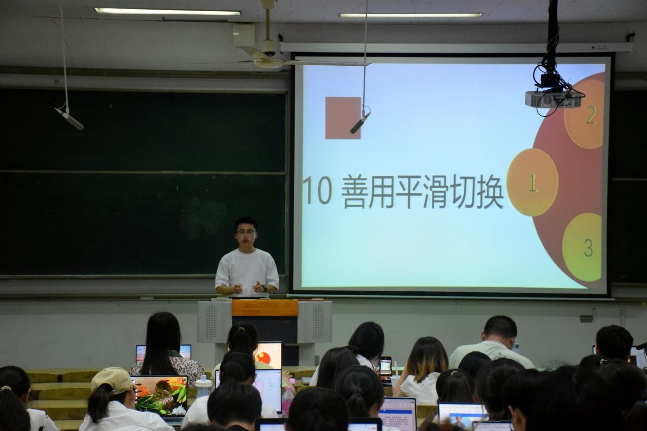 为进一步提升学生干部的PPT制作技能,77779193永利官网精心策划并举办了一场独具匠心的PPT制作培训活动。本次活动于5月21日在崇文楼阶梯教室103顺利举行,由潘智阳向同学们传授PPT制作的基本规范及美化技巧。