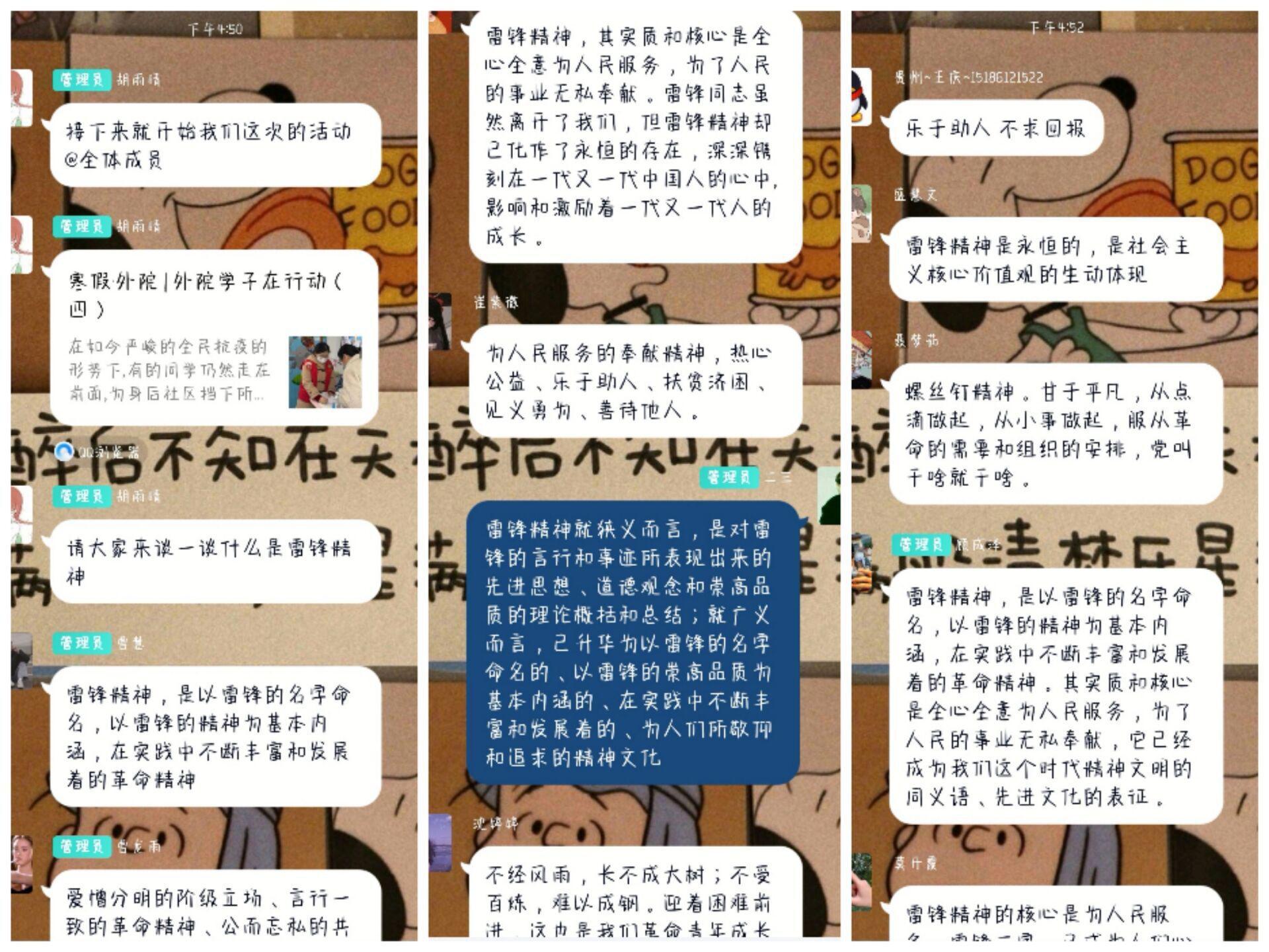 图为 同学们在群内讨论对雷锋精神的理解