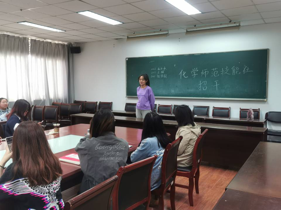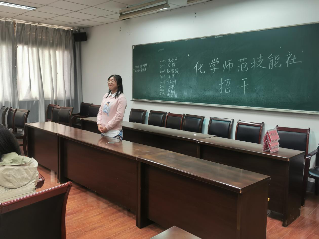 2020年10月22日下午3:30,淮阴师范学院化学师范技能社团在长江路校区生化楼219开展2020届招干面试工作。学弟学妹们早早地在候场室等候着,一张张青春活力的脸上书写着既激动又紧张的情绪。