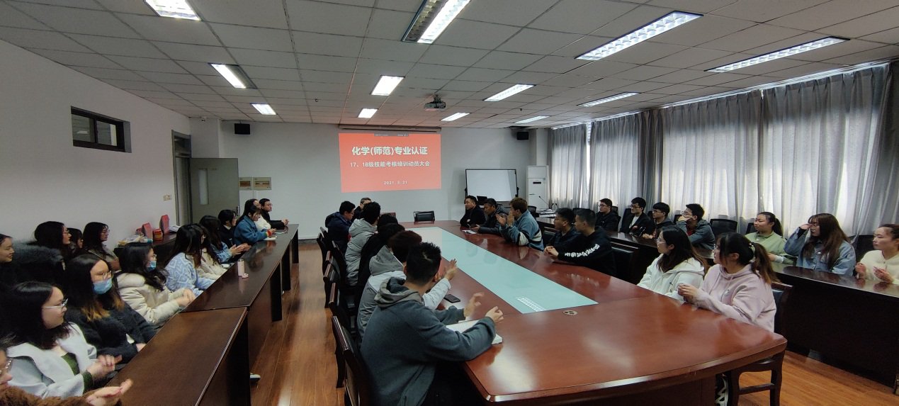 师范类专业认证是为保证基础教育从业人员达到相应的质量要求,由相关教育认证组织和专家学者对高校师范专业的教育质量进行考察、评估和审定的过程。通过专业认证工作的实施,师范类专业人才培养的质量得到了进一步的提升。为使化院1701、1801班全体师范生对此次化学(师范)专业认证有更深入的了解,同时鼓励学生积极参与技能培训,提升师范生的专业综合实力,3月21日下午14:30化学系在化学楼219会议室召开化学(师范)专业认证师范生技能考核培训动员大会。