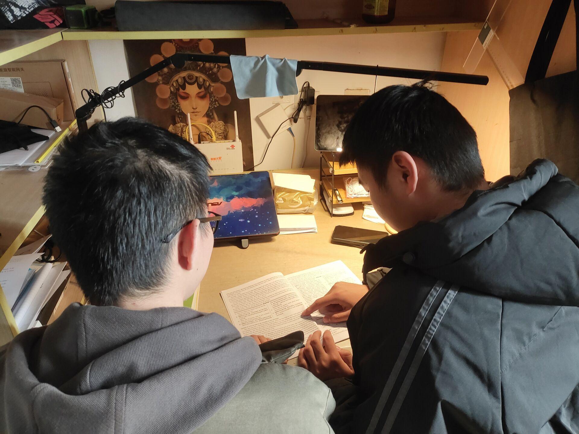 图为化院学生为英语基础薄弱同学辅导阅读理解