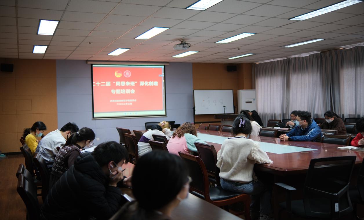 3月24日下午四点,化院组织学生于化学楼219会议室观看第二十二届“周恩来班”深化创建专题培训会,参加本次活动的有创周部成员及大一、大二各班团支书。
