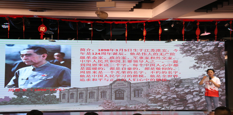 宣讲一开始先向学生们介绍了各个时期的周恩来的事迹,随后通过共同观看学习动画短片《大鸾——周恩来童年读书故事》,用一个个问题来进行互动,引发青少年学生的思考,让在场青少年学生充分体悟“周恩来精神”,最后宣讲团成员们与青少年学生热情互动,并鼓励其从小树立起“为中华之崛起而读书”的伟大理想信念。除此之外,宣讲内容还包括用一个个小故事,来让青少年学生真正领略到周恩来的崇高精神风范,进一步了解和学习“周恩来精神”。宣讲还紧扣“喜迎党的二十大”,使得青少年学生们看到我们的祖国日益昌盛强大,我们正接过时代的接力棒,这一群青少年学生必定在“周恩来精神”的引领下,紧跟时代步伐大步向前!