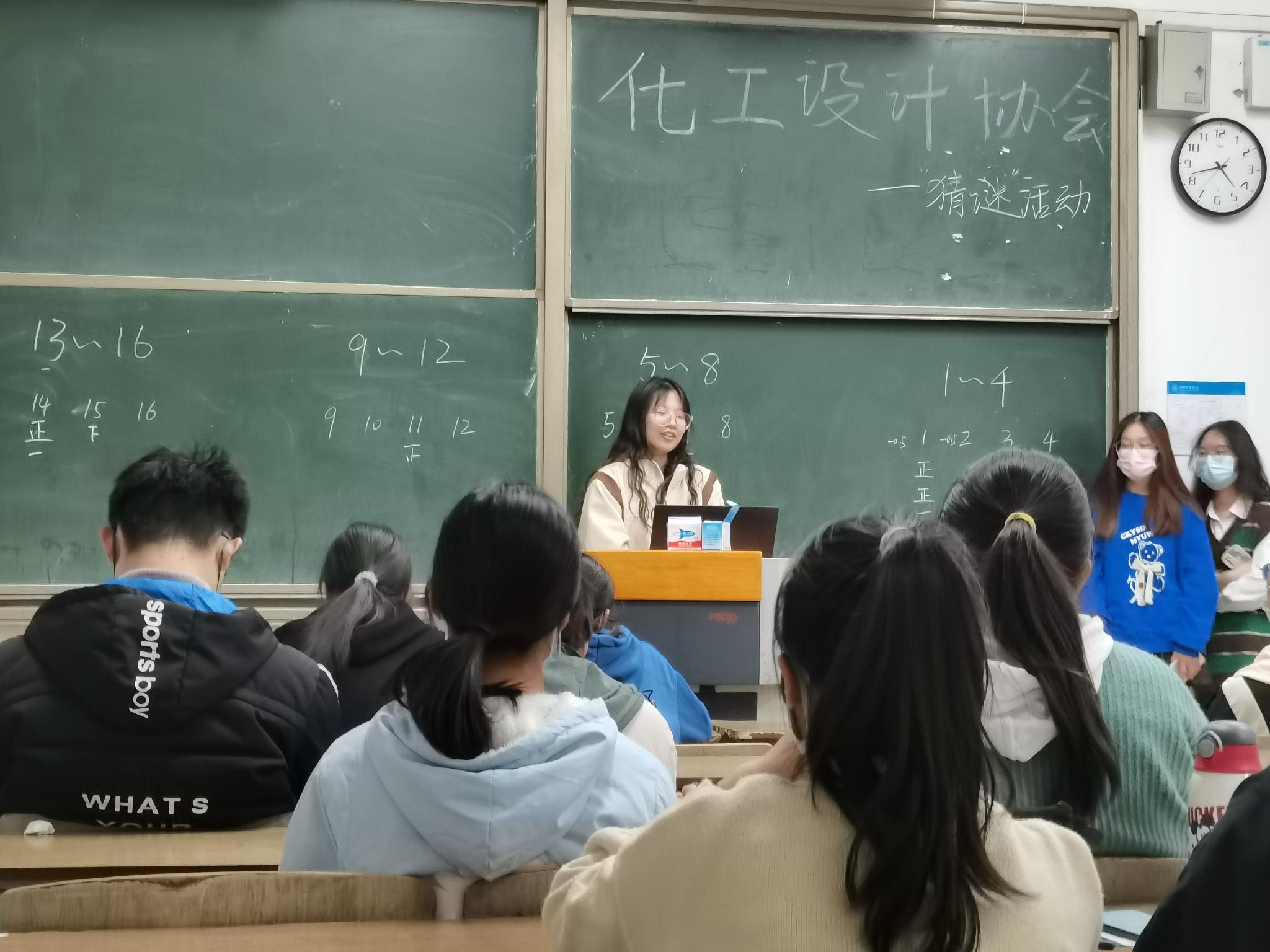 11月5日下午,化工设计协会于崇文楼1-105举办化学猜谜活动,化学是一门充满神奇色彩的科学,具有有效性、科学性和严谨性。课堂上的化学表现化学的严肃,生活中的化学凸显化学的多彩,实验中的化学体现化学的技术,而谜题中的化学突现化学的乐趣,本活动旨在以猜谜形式提高同学们学习化学的兴趣,丰富校园文化生活。
