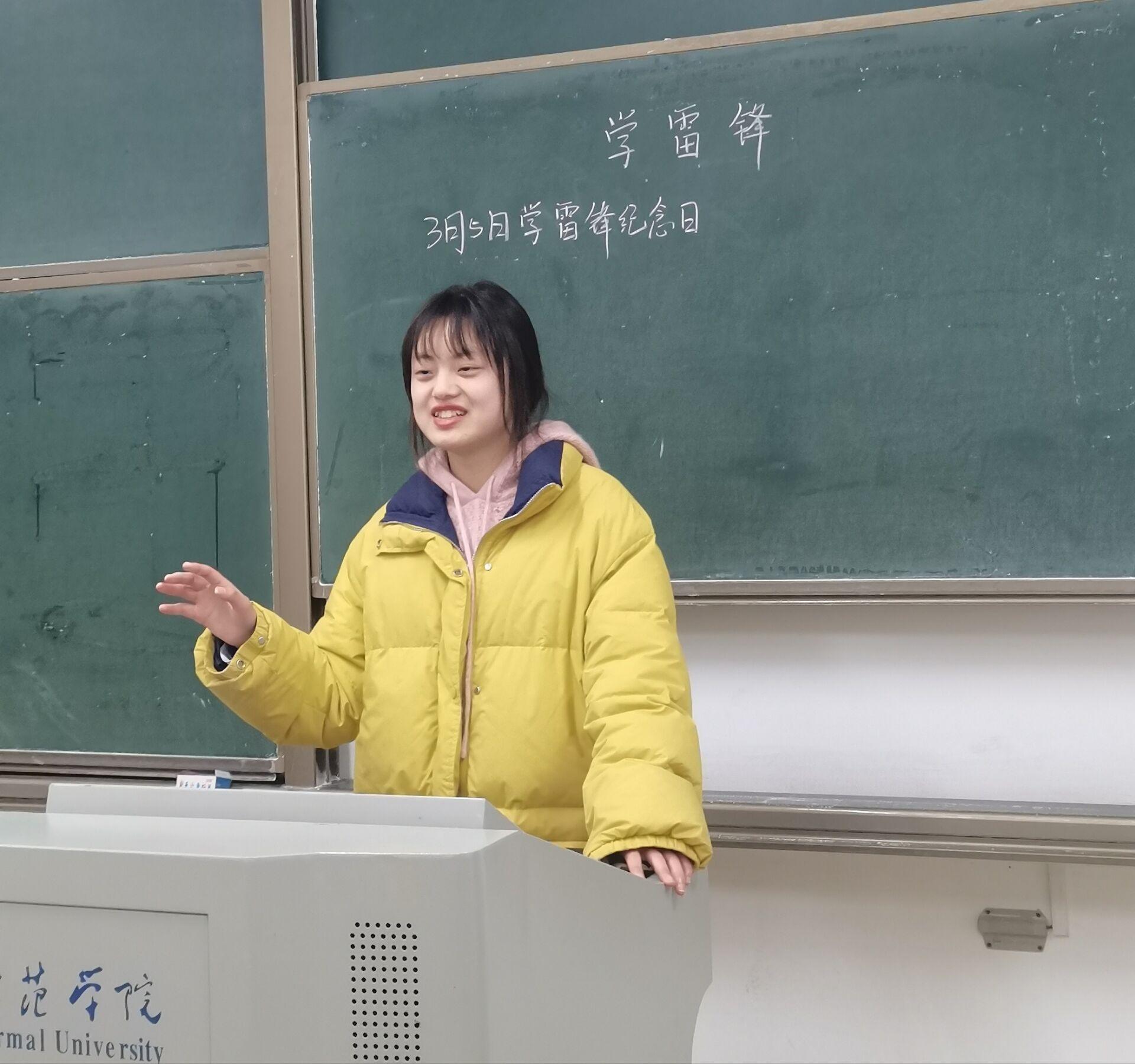 图为团支书孟心妍在讲话 陆逸雯摄
