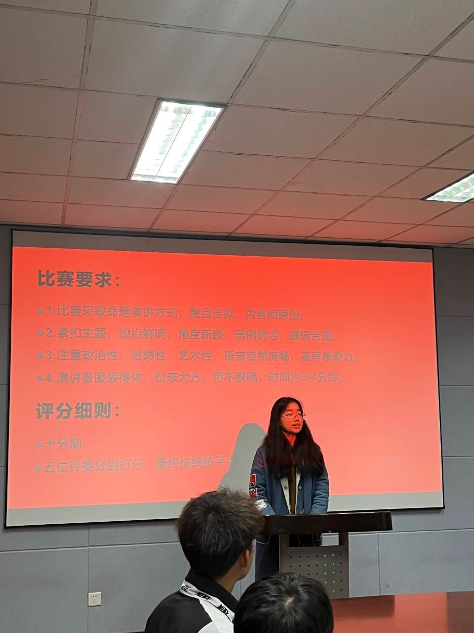 第二环节:参赛者进行演讲比赛。化院参赛学生依次进行演讲比赛。首先出场的是2102的潘智阳同学,她澎湃激昂、热烈的演讲风格给我们此次活动带来了一个好的开端。之后的选手各有所长,或热情洋溢,或娓娓道来。特别是来自化学化工2205班的董博文同学,以朴素平实、发自肺腑的语言,以周恩来等前辈们为自己的榜样,立志成为德才兼备的国家栋梁,道出了新时代青年学生的脚踏实地与奋斗青春。
