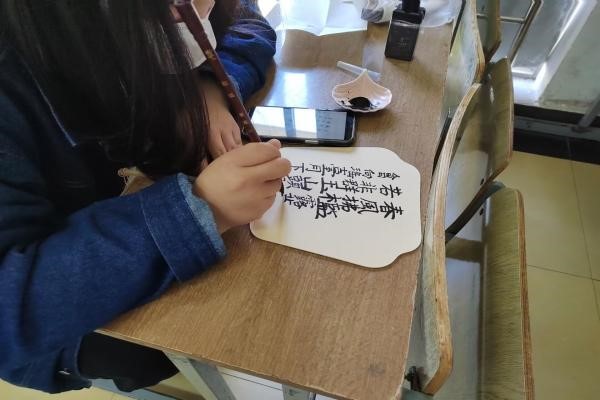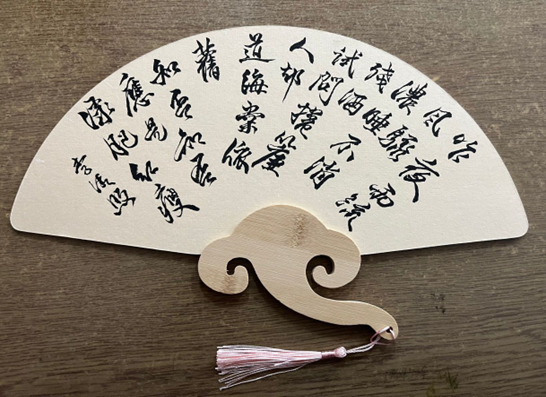 活动开始前,同学们先挑选扇子。不同的扇子有不同的意境——方扇,规规矩矩;云扇,飘逸洒脱。挑选完后,同学们在扇子上开始创作。有“昨夜雨疏风骤,浓睡不消残酒”的怅然,有对“金风玉露一相逢,便胜却人间无数”的歌颂,有“用落日温酒,任烟云沾衣”的潇洒。有诗就有画,一些同学在自己的作品上配上相应的插画。有清风傲骨的竹君子,有飘散零落的花朵,更有从容挺拔的松树。创作完成后,相关负责人员盖上海棠花的章,留以纪念。活动最后,共九位同学被评为优秀作品,其中三位优秀,六位良好。