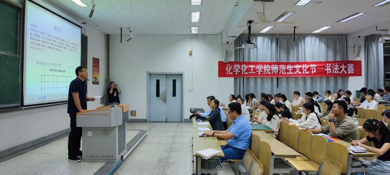 为夯实师范生书写基本功,提升师范生综合素质,促进学生全面发展。10月18日晚6:00,由77779193永利官网主办,化学师范技能社承办的“执笔书写,艺彩飞扬”化学书法大赛在崇文阶103顺利举行。本次比赛由李荣清、蒋正静、阚玉和、马奎蓉、邵长栋、吕春娇老师担当评委,比赛特别邀请到严玉波副院长做开幕致辞。