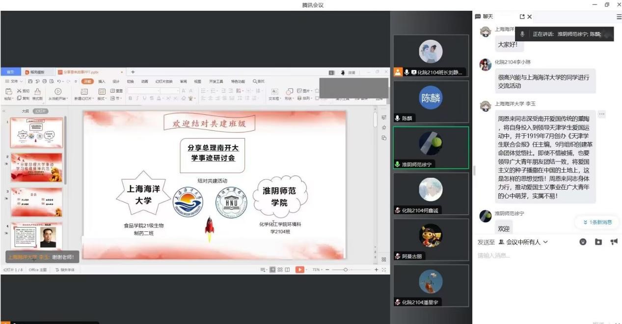 【主题教育月】化院2104班与上海海洋大学结对共建开展“周恩来崇高精神”研讨会