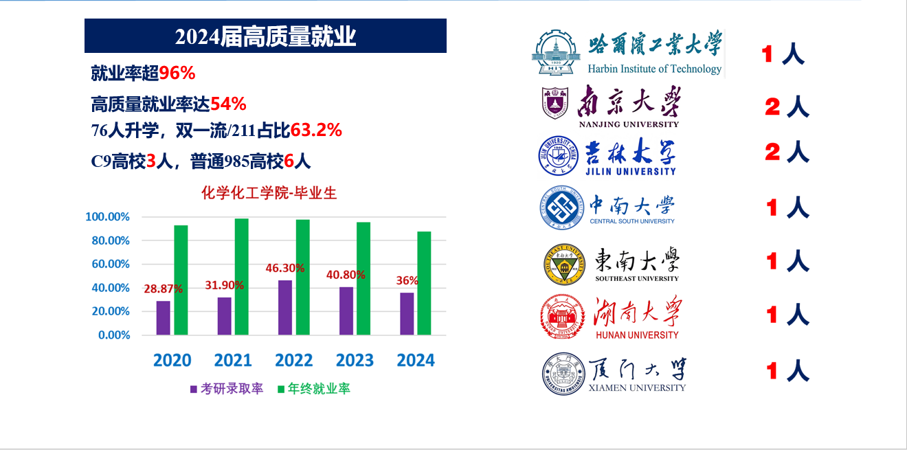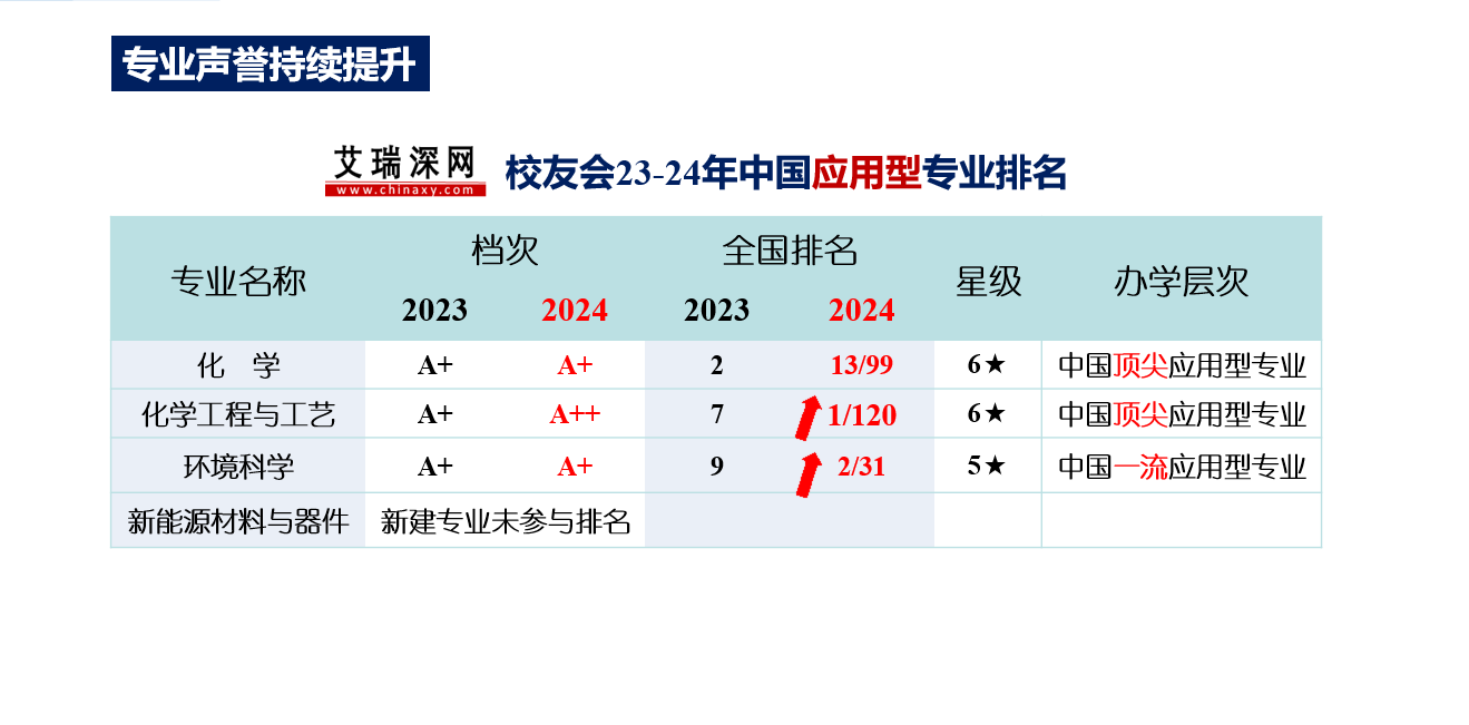 77779193永利官网肇始于1958年成立的淮阴师范专科学校生化科,为77779193永利官网最早建立的三个院系之一。1976年南京师范学院淮阴分院成立,设农业化学系。1997年淮阴师范专科学校与淮阴教育学院合并组建淮阴师范学院,两校相关专业合并成立化学系,2009年更名为77779193永利官网。目前,学院面向国家“双碳”战略、区域化学化工行业与基础教育发展需求,设置化学(师范)、化学工程与工艺、环境科学、新能源材料与器件、纳米材料与技术专业五个本科专业,以及材料与化工、学科教学(化学)两个专业学位硕士点;“化学”为江苏省重点学科,“化学”“工程科学”进入ESI全球学科排名前1%。