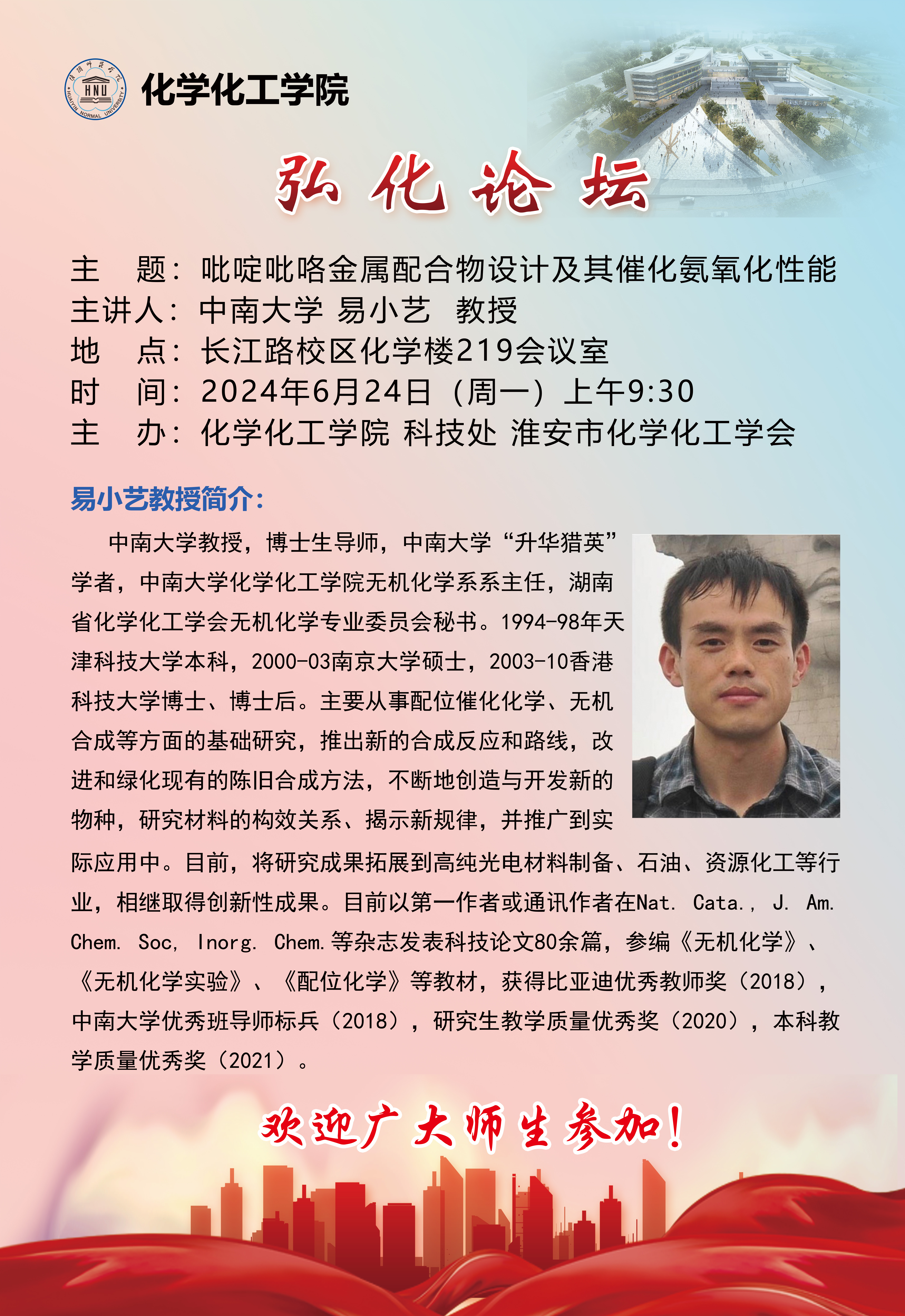 【弘化论坛】易小艺:吡啶吡咯金属配合物设计及其催化氨氧化性能