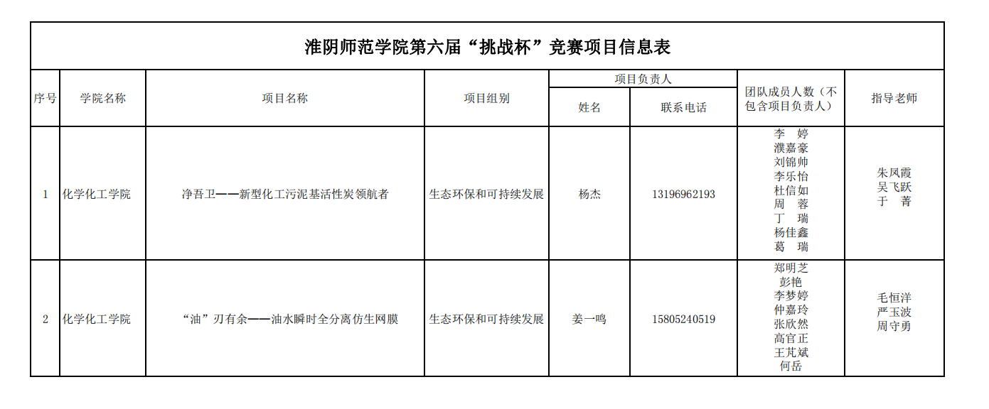 我院参与学校组织的校内“挑战杯”中国大学生创业计划竞赛江苏省选拔赛申报遴选工作,经过初赛、决赛及专家综合评议,我院《净吾卫--新型化工污泥基活性炭领航者》、《“油”刃有余--油水瞬时全分离仿生网膜》2件作品拟推荐到校团委参加第十四届“挑战杯”中国大学生创业计划竞赛江苏省选拔赛,现将作品信息公示如下:
