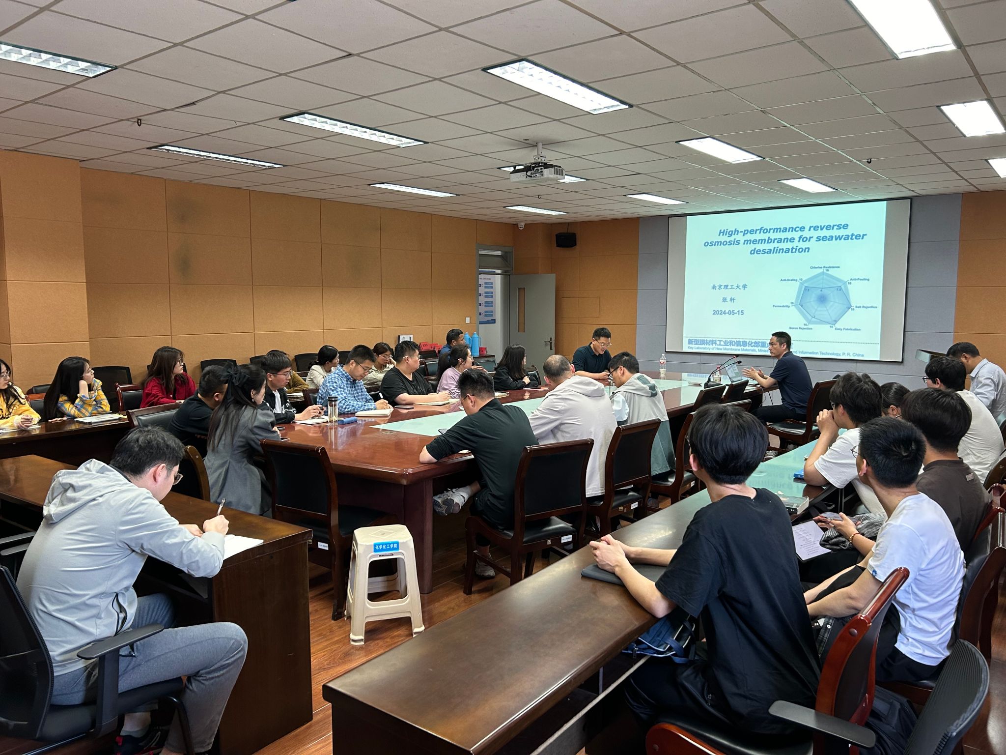报告结束后,与会师生就反渗透复合膜基膜的选择、膜通量和抗污染性能之间的权衡以及研究生培养等相关问题与张轩教授进行了热烈、深入的交流。