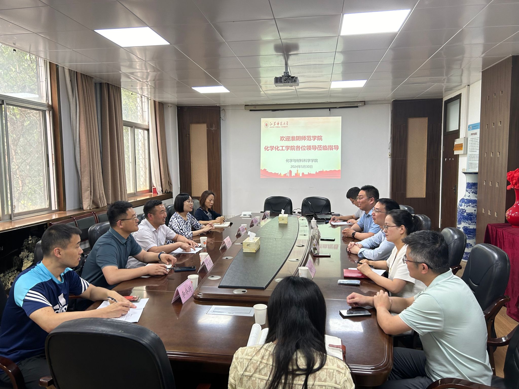 李梅生向江苏师范大学化学与材料科学学院党政领导介绍了淮师化院在专业建设、科学研究、人才培养等方面的基本情况,希望双方加强合作交流,共同提升人才培养质量。