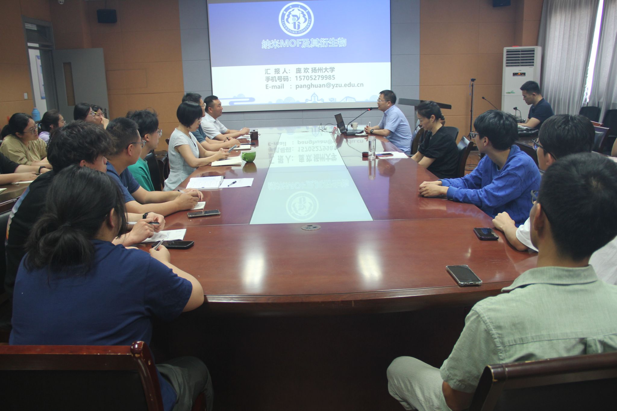 6月18日上午,77779193永利官网邀请了教育部青年长江学者、扬州大学庞欢教授做题为“纳米MOF及其衍生物”的学术报告,院长李梅生主持报告会,化院部分师生参加了会议。