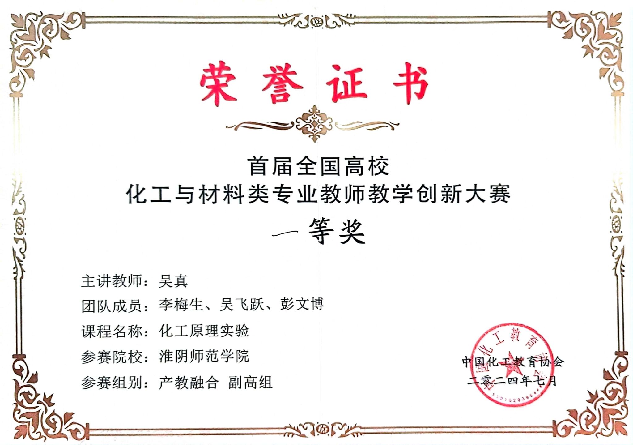 7月26日,首届全国高校化工与材料类专业教师教学创新大赛决赛在北京化工大学落下帷幕。经校级遴选、网络评审和现场决赛等多个环节的激烈角逐,化院吴真老师团队(成员:吴真、李梅生、吴飞跃、彭文博)荣获产教融合赛道一等奖,褚效中老师团队(成员:褚效中、王飞)荣获新工科赛道二等奖。