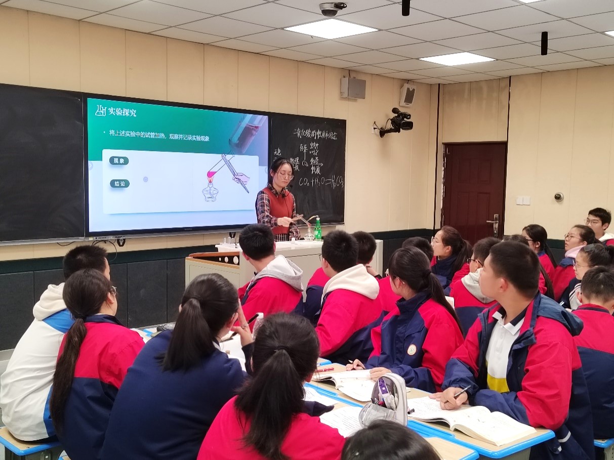 11月14日,实习生陈欣悦在淮安市北京路中学开展了《二氧化碳的性质与用途》实习公开课。她通过利用生活中的真实情境,激发了初三学生学习化学的浓厚兴趣;采用实验探究教学方式,引导学生认识二氧化碳的性质和用途;运用多种教学方法媒介,帮助学生建构化学知识,形成化学观念。2024级部分师范生参加了见习观摩。