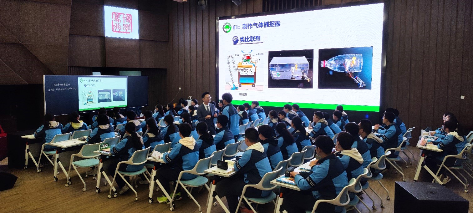 11月20日,实习生潘智阳在江苏省清江中学运用STEM教育理念开展了《自然界中的碳循环》项目式教学实习公开课。他以二氧化碳捕集利用方案的设计任务为线索,通过“如何吸碳”“如何捉碳”“如何用碳”三个子问题的破解,培养了初三学生综合运用多种学科知识进行跨学科实践的能力。2024级部分师范生参加了见习观摩。