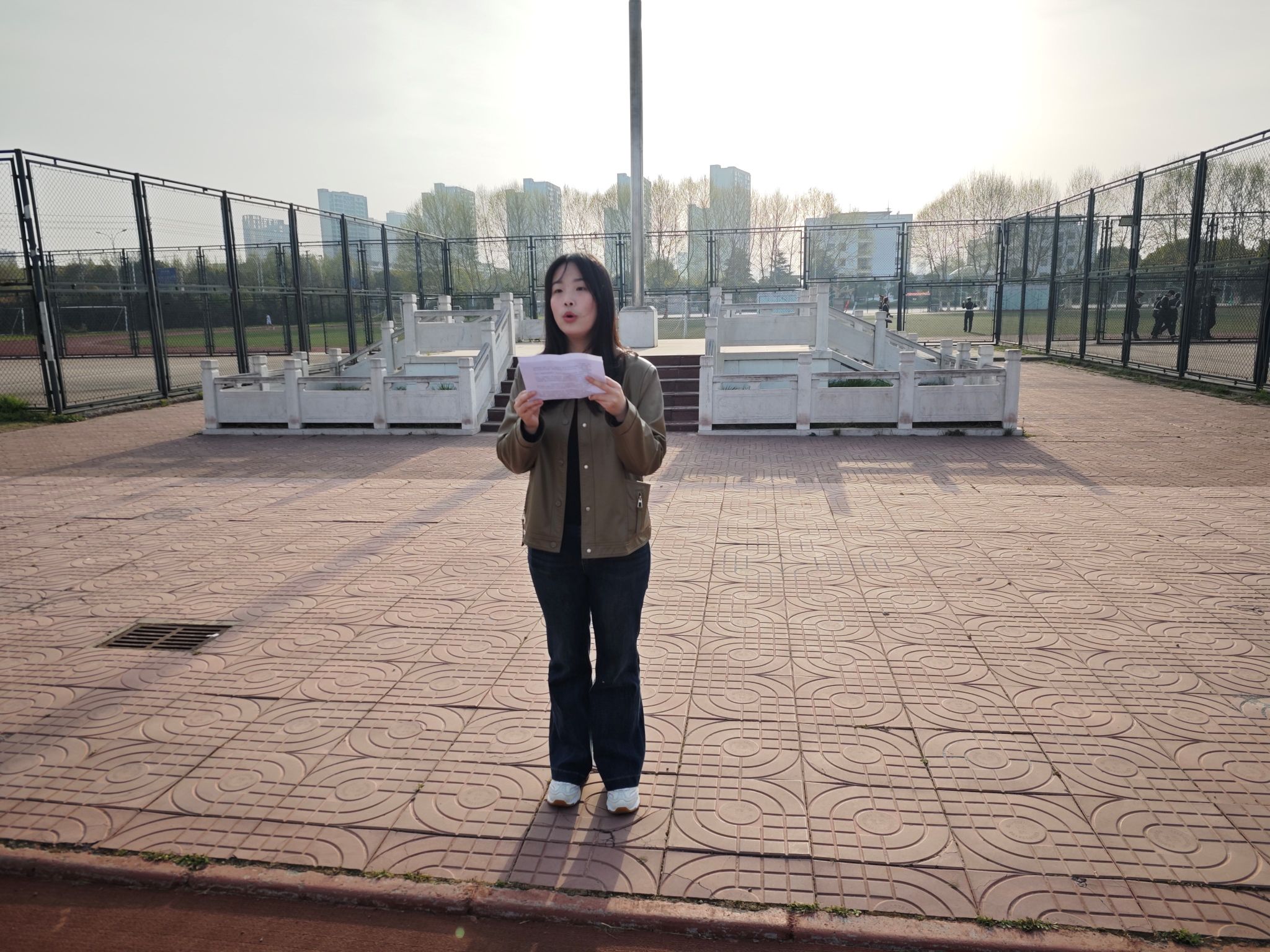 朱君老师发表国旗下讲话,从实验室安全、校园安全、心理安全和网络安全四个方面,向学生讲解如何构建全方位的安全防线,呼吁每位同学成为安全的守护者。
