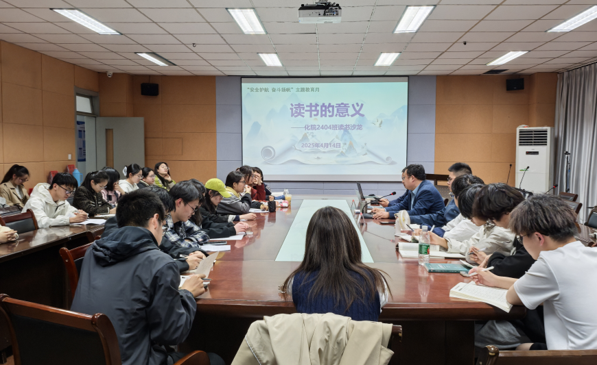 淮师新闻网4月15日电(记者 黄玺蓉)为深入贯彻学校“安全护航 奋斗扬帆”主题教育月活动要求,激发全班同学健康生活,砥砺奋斗精神,4月14日晚,化院2404班在化学楼219会议室举办以“读书的意义”为主题的读书沙龙,通过分享阅读收获,启迪思想之旅。新传学院何顺民博士、化院徐乐博士和班主任李剑老师应邀参加沙龙。