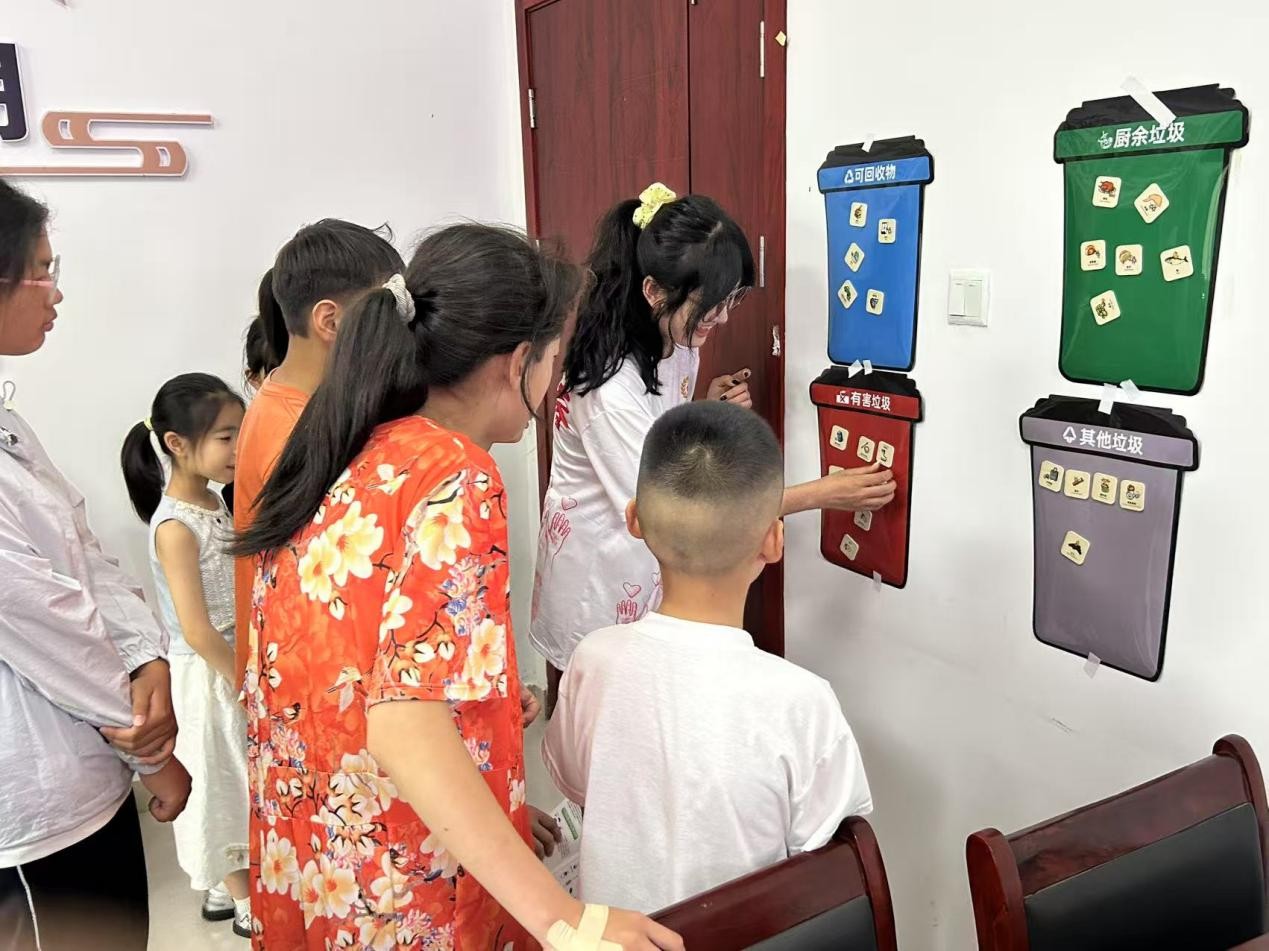 在垃圾分类科普课堂上,焕青行队员结合图文视频与生活实例,深入浅出讲解垃圾分类四分类标准及常见误区;设置“分类大闯关”互动游戏,利用模拟垃圾桶和分类卡片进行实战考核,评选“环保小卫士”并颁发徽章证书,激发参与热情。参与活动的孩子们将课堂所学知识以及获得的荣誉带回家中,成为家庭垃圾分类的“小小监督员”和“宣传员”。