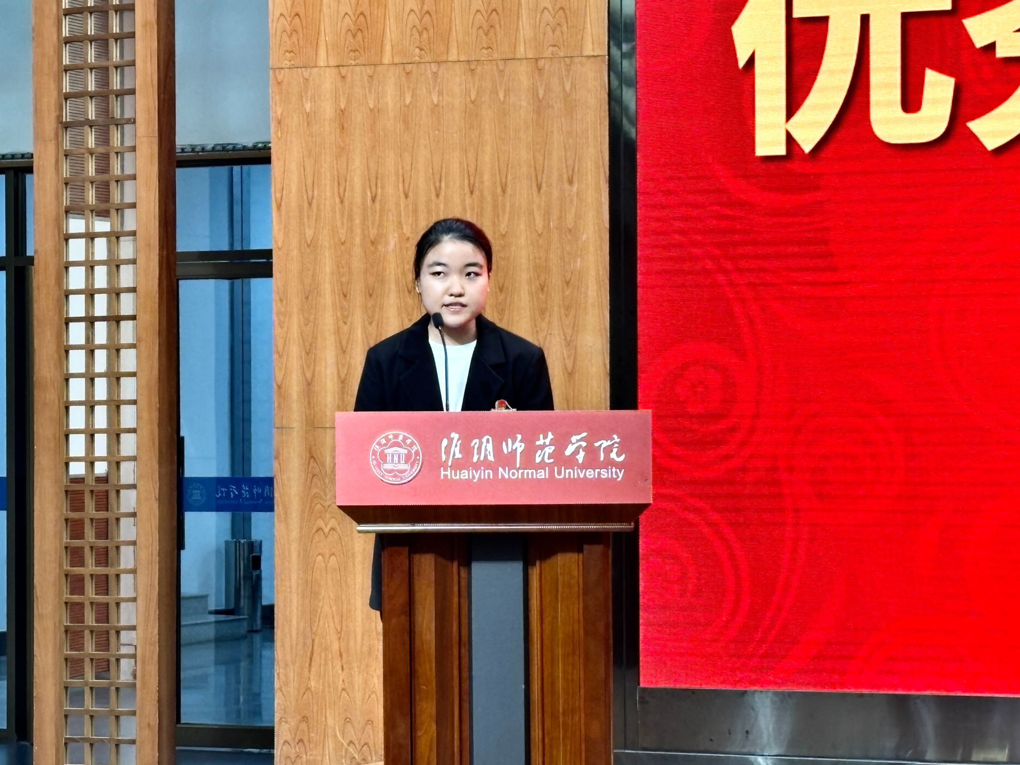 优秀老生代表分享成长心得。陈沁悦鼓励新生积极适应大学生活,主动向师长请教并参与科研实践以拓宽视野。单婧则结合自身从挫折中成长的经历,强调以学业为本、积极科研与实践的重要性,感谢学院师长的培养与指引,并勉励新生珍惜时光、勇于突破。