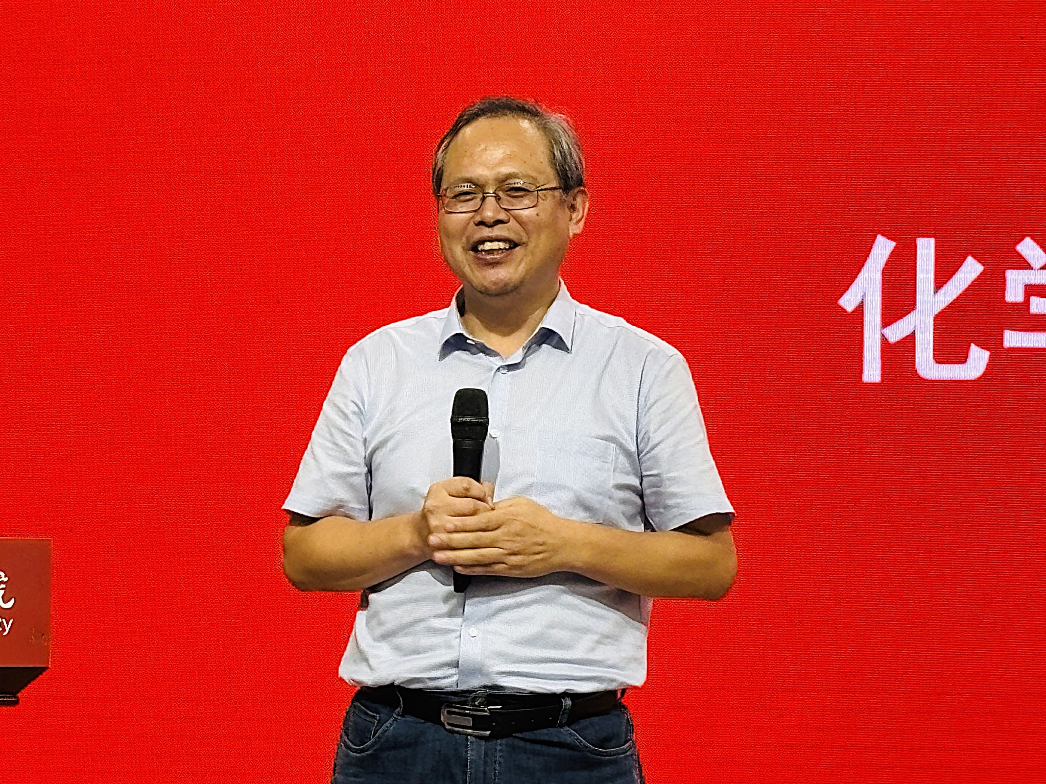 图为骆仁林书记在新生家长会上发言 化通社摄