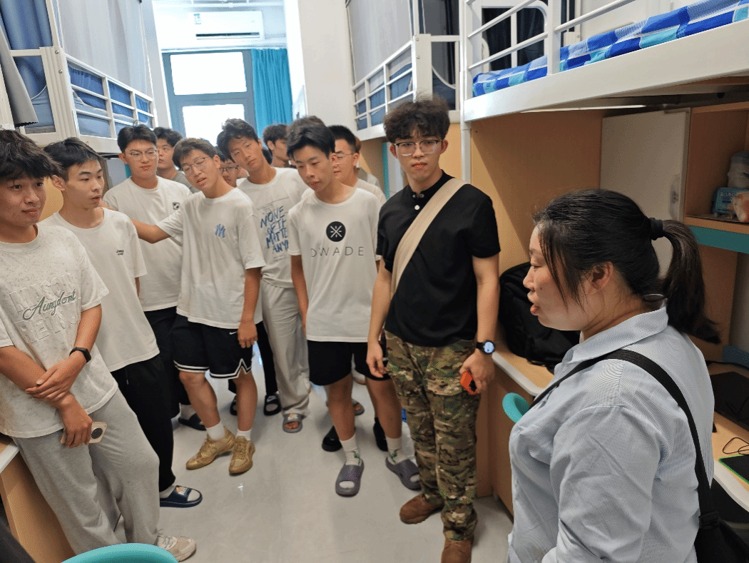 活动中,学院内务组老师走进新生宿舍,就物品摆放、床铺整理、卫生死角清理及用电安全等细节进行了标准化示范与讲解,为同学们提供了直观、实用的内务整理规范。