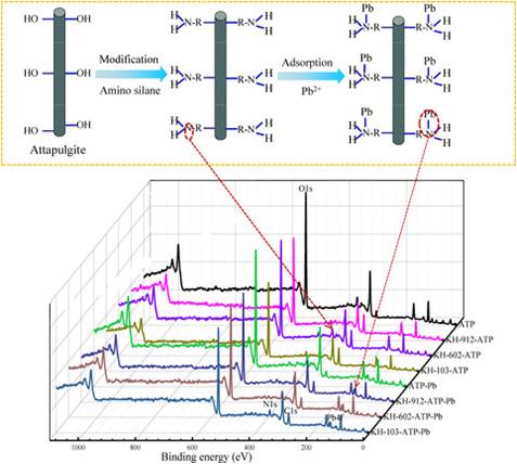 凹凸棒石黏土是苏皖地区特色矿产资源,储量丰富,主要成分为凹凸棒石,对其功能化修饰是提高性能和附加值的有效途径。发展简单、有效的改性方法,使纳米凹凸棒石有效吸附去除水中不同类型的污染物,具有重大的环境意义与应用价值。本研究以提高纳米凹凸棒石对重金属离子(Pb2+)废水吸附容量为目标,开展氨基硅烷改性纳米凹凸棒石吸附材料的制备。通过静态吸附实验,利用制备的氨基硅烷改性纳米凹凸棒石为吸附剂,研究其对重金属离子(Pb2+)吸附性能和吸附行为。考察吸附剂用量、吸附时间、溶液pH值和不同初始浓度对吸附效果的影响。氨基硅烷改性纳米凹凸棒石吸附材料KH-912-ATP、KH-602-ATP、KH-103-ATP和ATP对重金属离子(Pb2+)的吸附性能研究表明,在温度为25 oC,初始浓度为100 mg/L时,0.075 g 氨基硅烷改性纳米凹凸棒石吸附材料吸附Pb2+ 30 min均达到平衡,在前5 min吸附速率较快。溶液的pH值对Pb2+去除率影响较大,低pH值条件下,对Pb2+的去除率低,随着pH值的升高,去除率和吸附量也随之加大,但是pH值过大以后,Pb2+容易形成沉淀,反而使吸附剂的利用率降低。综合考虑去除率和平衡吸附量最终选择pH值在4-6.5范围内为吸附介质的酸度环境分析Pb2+。实验条件下,纳米凹凸棒石和氨基硅烷改性纳米凹凸棒石吸附材料对重金属离子Pb2+的吸附过程都符合拟二级动力学,吸附等温线较好的符合Langmuir吸附等温方程。在25 oC下氨基硅烷改性纳米凹凸棒石吸附材料KH-912-ATP、KH-602-ATP、KH-103-ATP和ATP的最大饱和吸附量顺序为:28.563 mg/g、78.802 mg/g、61.125 mg/g、82.169 mg/g。采用分子动力学模拟和XPS分析表征研究了氨基硅烷改性纳米凹凸棒石吸附材料对Pb2+的吸附机理,结果表明,Pb2+成功吸附于氨基硅烷改性纳米凹凸棒石吸附材料表面,主要是改性吸附剂中的氨基与Pb2+形成-NH2Pb2+共价键,是一个复杂的吸附过程。