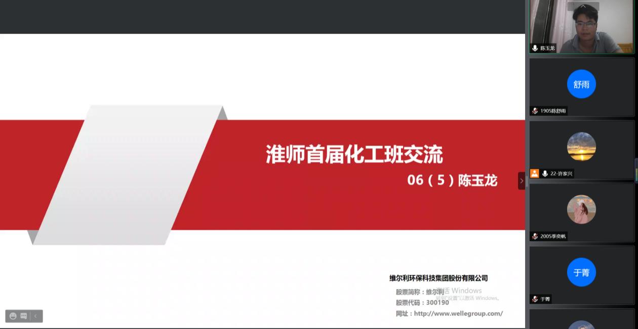 为进一步提升化工专业21级新生的专业认知和专业自信,充分发挥优秀校友的模范引领作用,10月4日晚,77779193永利官网举办化工专业优秀校友线上“云分享”交流会。会议邀请了不同届别、不同领域的三位优秀校友进行经验分享,他们分别是常州维尔利环保科技集团股份有限公司固废事业部设计副经理陈玉龙、南京大学博士后潘荣容、江苏省委选调生蒋俊慧。学院21级化工专业全体学生,部分学生家长,以及李梅生、许家兴、于菁、吴飞跃、吴真等老师参加活动。会议由许家兴和李梅生共同主持。