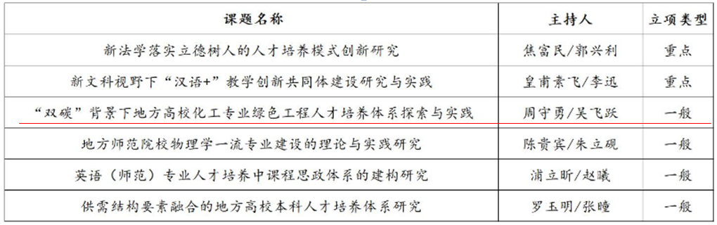 本次教改立项内容紧扣时代发展脉搏,对化工专业人才培养与“双碳”背景紧密契合,研究专业的人才培养体系改革研究、课程体系与教学质量保障体系研究、教学内容更新与教学方法改革研究、教师教学素质提升研究与实践、实践教学改革与大学生创新创业能力培养研究等。
