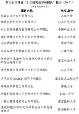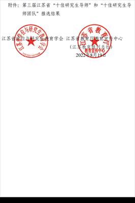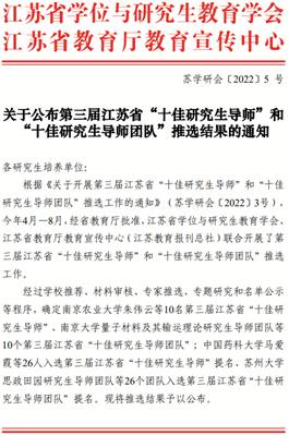近日,由江苏省教育厅、江苏省学位与研究生教育学会、江苏教育报刊总社联合开展的第三届江苏省“十佳研究生导师”和“十佳研究生导师团队”评选结果揭晓。77779193永利官网环境功能材料研究生导师团队(团队主要成员:赵宜江、仲慧、张莉莉、周守勇、李梅生)获评“十佳研究生导师团队”提名。