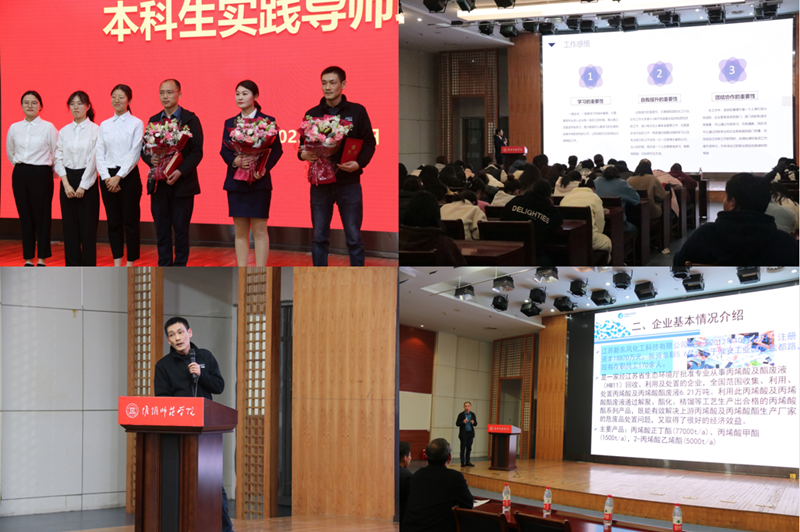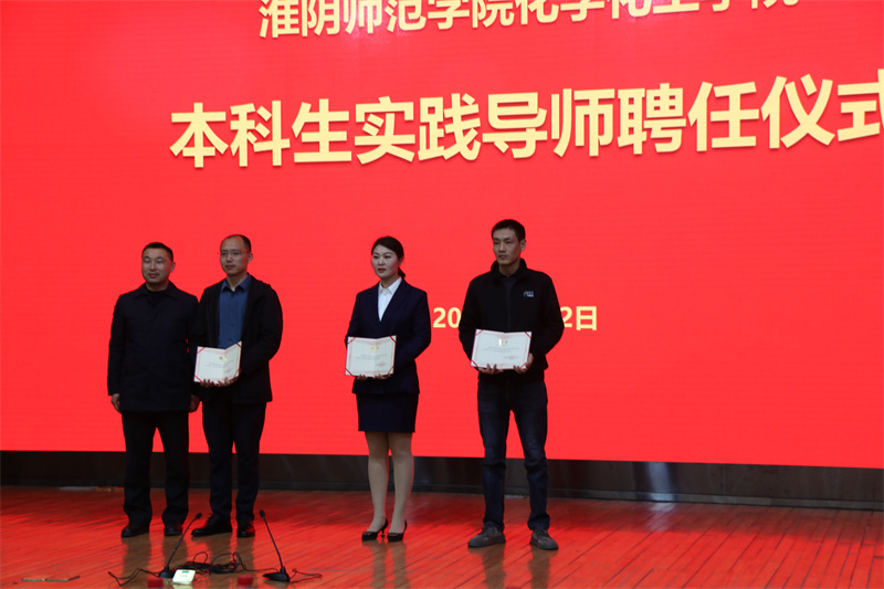 随后举行了本科生“实践导师”聘任仪式,77779193永利官网聘任化院2002级校友、江苏宏邦化工科技有限公司常务副总经理张金宝、化院2002级校友、江苏新东风化工科技有限公司安全总监张银林、化院2006级校友、江苏安德利生物科技有限公司安全总监万荣为化院本科生实践导师,化院副院长李梅生为三位校友颁发聘书。