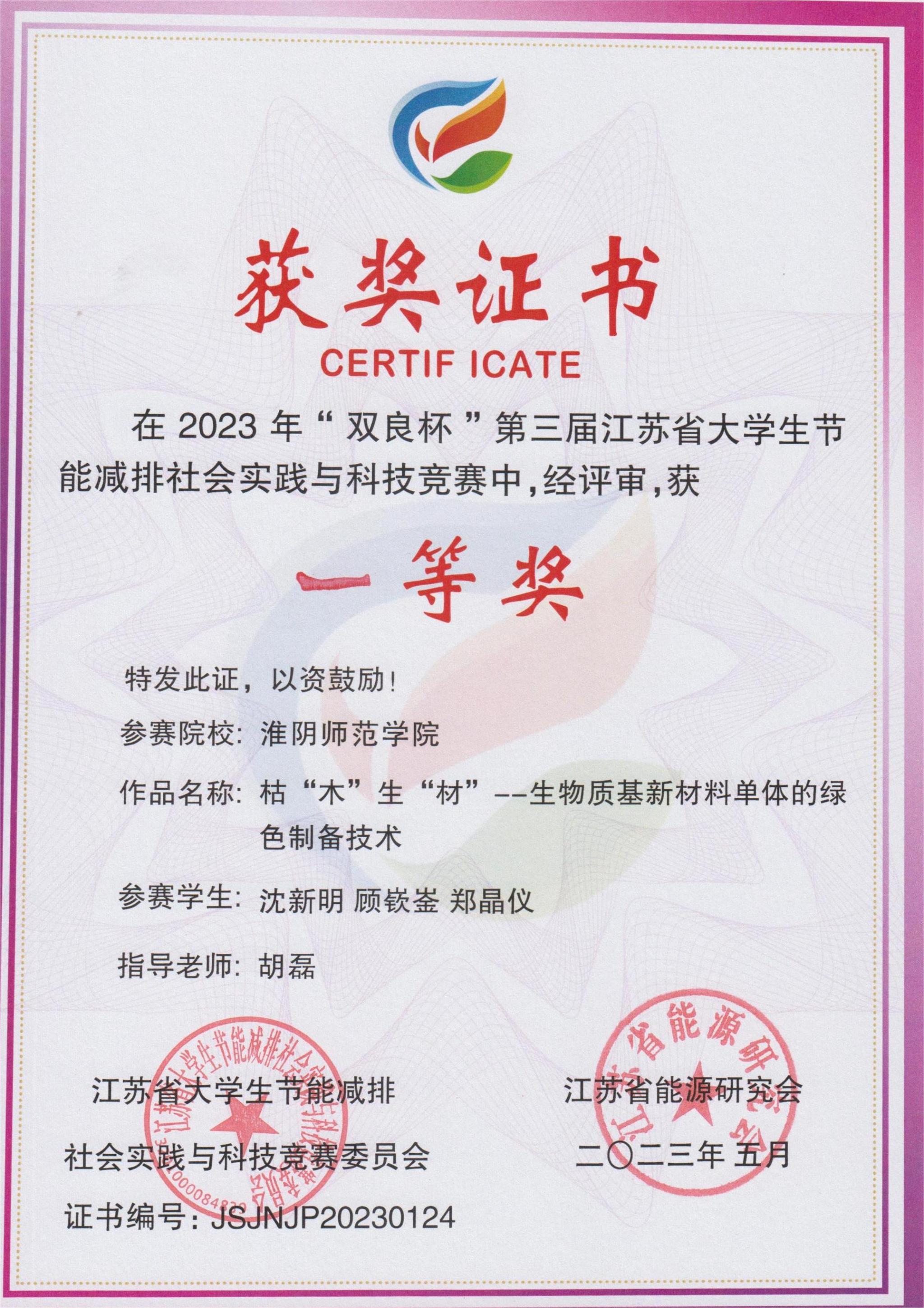 枯“木”生“材”——生物质基新材料单体的绿色制备技术(学生:沈新明、郑晶仪、顾嵚崟;指导老师:胡磊)